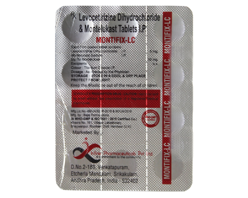 MONTIFIX-LC Tablet is a combination medicine used in the treatment of allergic symptoms such as runny nose, stuffy nose, sneezing, itching, swelling, watery eyes and congestion or stuffiness. It also reduces inflammation in the airways and make breathing easier. It is also used in the treatment of allergicrhinitis, asthma, Hey fever. Before you start taking this medicine it is important to inform your doctor if you are suffering from kidney disease. MONTIFIX-LC Tablet is taken with or without food in a dose and duration as advised by the doctor. The dose you are given will depend on your condition and how you respond to the medicine. You should keep taking this medicine for as long as your doctor recommends. If you stop treatment too early your symptoms may come back and your condition may worsen. Let your doctor know all other medications you are taking as some may affect, or be affected by this medicine.